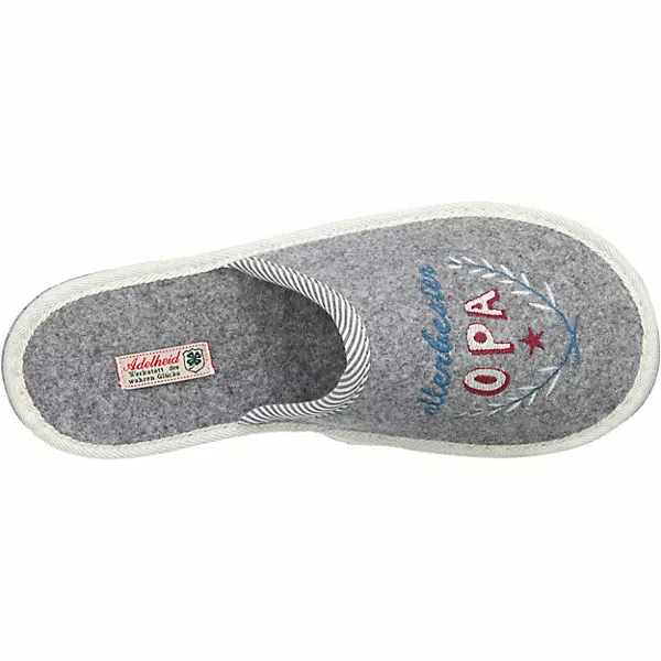Gemütliche Adelheid Hausschuhe mit witziger „Allerbester Opa“ Stickerei auf der Vorderkappe.