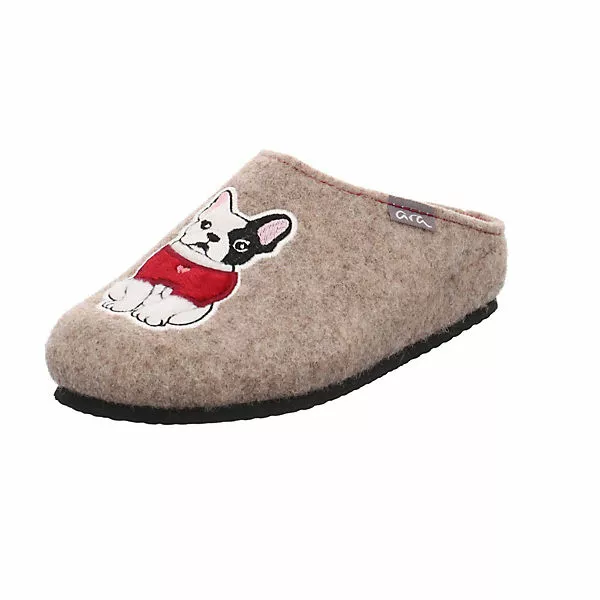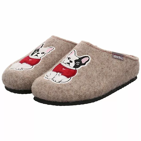 Gefertigt aus hochwertigem Wollfilz sind die Hausschuhe von ara die besten Begleiter für eine gemütliche Zeit daheim wenn es draußen ungemütlich wird. Ein innenliegende Keilsohle sorgt dabei für einen angenehmen Stand und der Wollfilz für warme Füße. Dieses Modell punktet mit einem hellen Beigeton und einer hübschen Hundeapplikation.