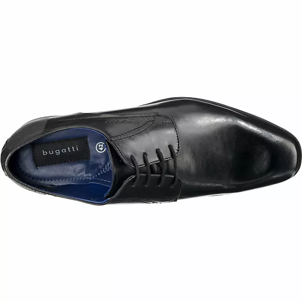 Schöne Herrenschnürschuhe von Bugatti aus einem feinen hochwertigem Glattleder. Der Schuh hat eine normale Weite. Der Absatz ist durchgehend flach. Die weiche PU-Sohle schont die Gelenke und federt jeden Ihrer Tritte optimal ab. Der Artikel verfügt über einen Schnürverschluss. Die Schuhgröße fällt regulär aus.