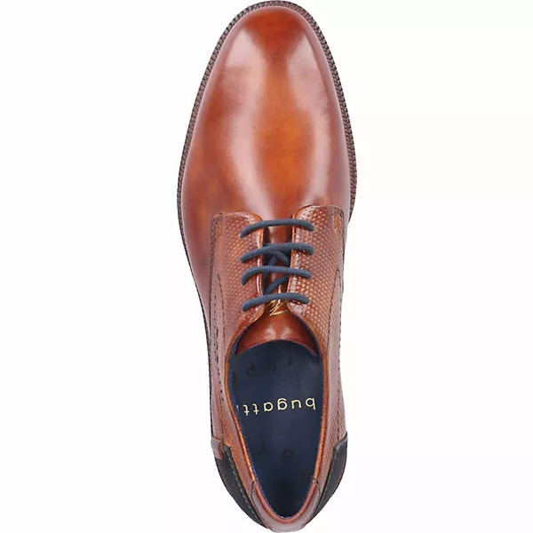 Toller Businessschuh von Bugatti aus Glattleder. Durch die effektvollen Stanzungen sowie den farblich abgesetzten Schnürsenkel kann der Lederschnürer überzeugen.