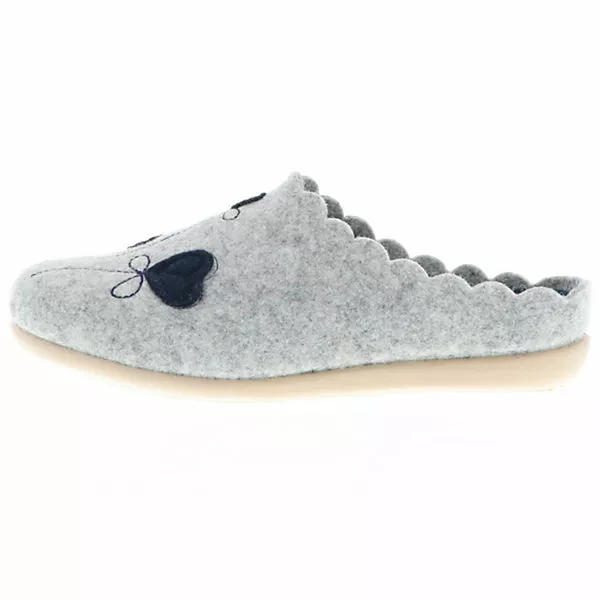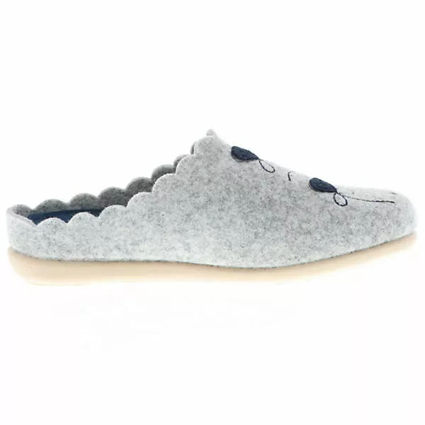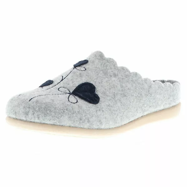 Das robuste und zugleich weiche Filz-Material sorgt für einen wohligen Tragekomfort. Die gepolsterte, herausnehmbare Innensohle und die profilierte Laufsohle aus Synthetik machen die Pantoffeln flexibel und angenehm zu tragen. Für einen angenehmen Stand wurde der Hausschuh mit einem kleinen Keilabsatz von 2 cm versehen.