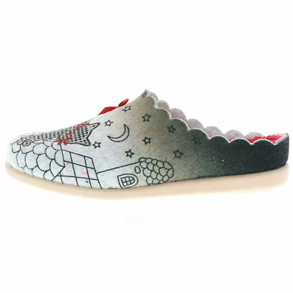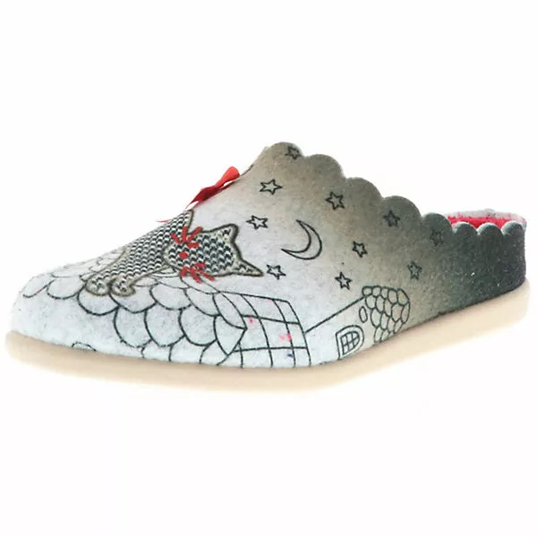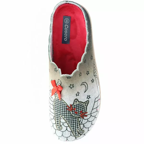 Das robuste und zugleich weiche Filz-Material sorgt für einen wohligen Tragekomfort. Die gepolsterte, herausnehmbare Innensohle und die profilierte Laufsohle aus Synthetik machen die Pantoffeln flexibel und angenehm zu tragen. Für einen angenehmen Stand wurde der Hausschuh mit einem kleinen Keilabsatz von 2 cm versehen.