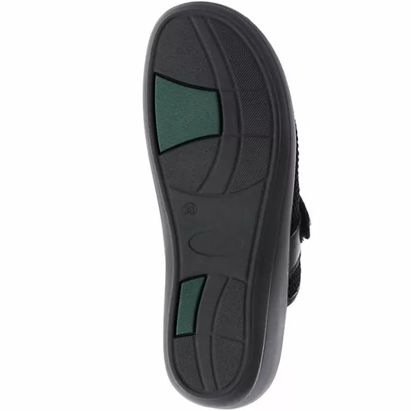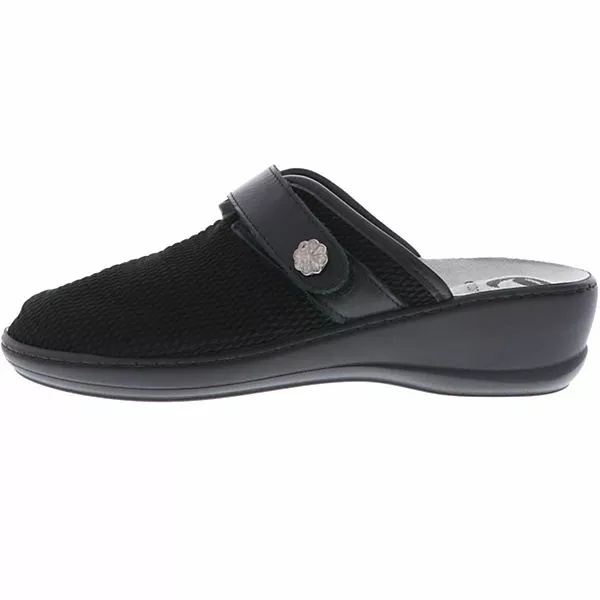 Der schlichte Hausschuh besticht vor allem durch die wahnsinnig weich gepolsterte Decksohle die herausnehmbar ist. Durch die Luftlöcher in dieser wird der Schuh atmungsaktiv und sorgt für ein gutes Klima für die Füße. Der am Spann sitzende Klettverschluss kann mühelos verstellt werden. Da das Obermaterial aus Stretch ist, passt sich dieses wunderbar an die Fußkontur an.