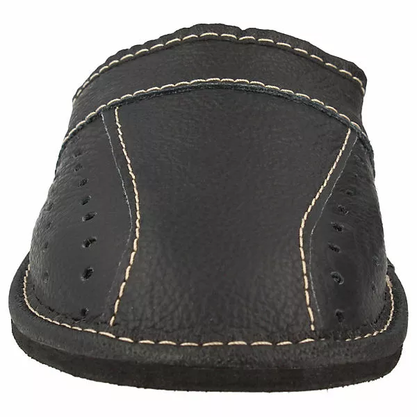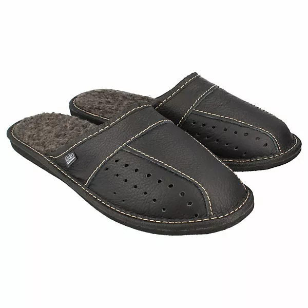 Dieser Pantoffel ist ein zeitloses Design, das niemals aus der Mode kommt. Das Obermaterial und die Innensohle sind mit Lüftungslöchern versehen, die Ihren Füßen ein angenehmes Klima verleihen. Der Slipper ist leicht an- und auszuziehen, sodass Sie schnell und flexibel in den Hausschuh schlüpfen können. Er ist in vielen Größen erhältlich, sodass die ganze Familie, egal ob groß oder klein, davon profitieren kann. Dank des hochwertigen, stabilen und festen Rindsleders ist der Pantoffel schmutzabweisend und lässt sich mit Wasser leicht reinigen.
