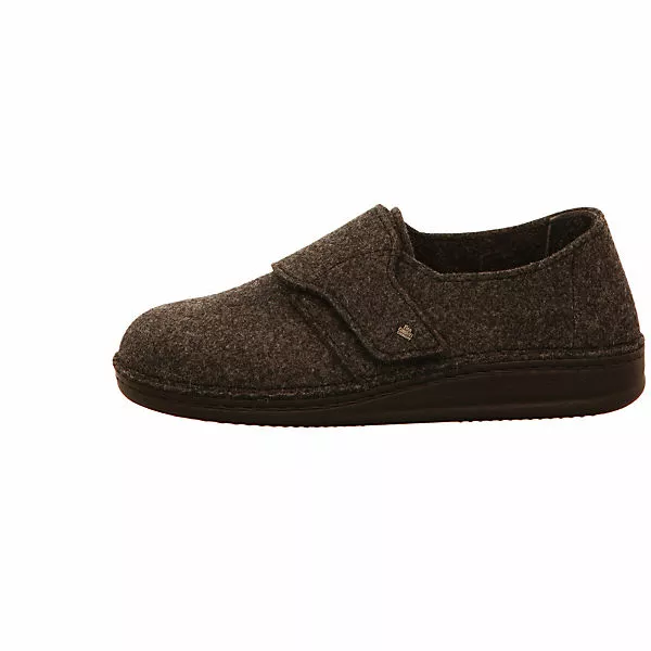 Bequeme Hausschuhe für Herren von Finn Comfort aus einem angenehm weichen Filzmaterial. Innen ist der Schuh mit hochwertigem Filz augestattet. Der Schuh hat eine normale Weite. Der Absatz ist durchgehend flach. Die weiche PU-Sohle schont die Gelenke und federt jeden Ihrer Tritte optimal ab. Der Klettverschluss zum einfachen und bequemen an- und ausziehen sorgt für einen guten Halt.Ebenfalls ist eine stufenlose Anpassung an den Fuß möglich. Die Schuhgröße fällt regulär aus.