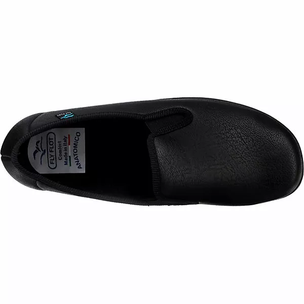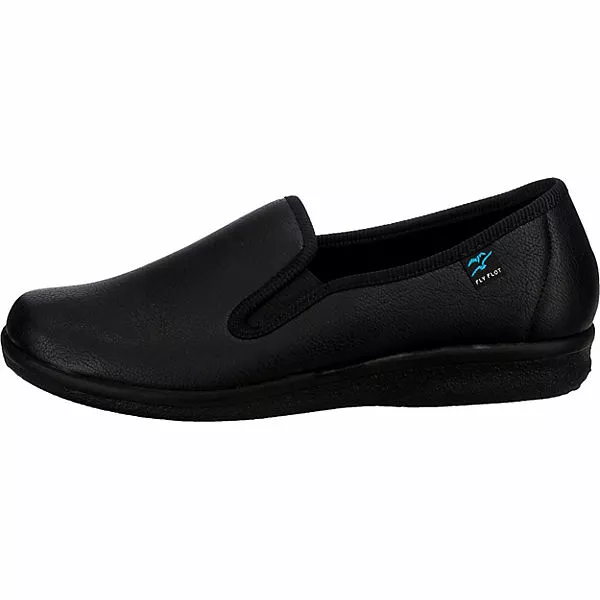 Bequem für daheim: die Hausschuhe von der Marke FLY FLOT. Ein sicherer Sitz am Fuß ist dank des elastischen Bandes kein Problem. Das Obermaterial des Modells ist aus Synthetik und ergibt ein stimmiges Gesamtbild.