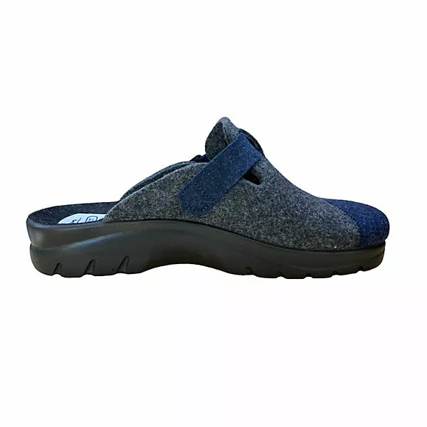 Ein bequemer und modischer Herren Pantoffel aus dem Hause Fly Flot. Das Obermaterial wurde aus weichem Softfilz gearbeitet. Ausgestattet mit einem anatomisch geformten Fußbett aus Filz, reinschlüpfen und wohlfühlen. Eine super leichte und flexible Laufsohle mit einem Keilabsatz von ca. 2,5 cm rundet das Modell perfekt ab. Eine verstellbare Schließe über dem Rist, sorgt für optimale Passform und Halt. Mit diesem Herren Hausschuh erleben Sie ein unbeschwertes Laufvergnügen. Durch seine gut profilierte Laufsohle können Sie diese Pantolette im Haus oder auch außer Haus tragen.