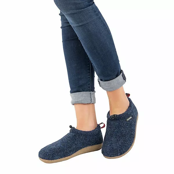 Damenhausschuh von Giesswein aus einer hochwertigen Wolle. Für die Innenausstattung wird eine hochwertige Wolle verwendet. Durch die auswechselbare Decksohle ist es möglich, eigene Einlagen zu verwenden. Geschnitten ist die Form für normal breite Füße (Weite F). Der Absatz ist durchgehend flach ,für gute Bodenhaftung sorgt die abriebfeste und griffige Gummisohle. Die karree-förmige Schuhform hat zwei Vorteile: Sie wirkt sportlich und bietet einen angenehmen Tragecomfort für den Fuß und die Fußzehen. Die Schuhgröße fällt regulär aus.
