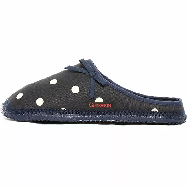 Süß und mädchenhaft ist der Pantoffel Plein mit Tupfen und Masche. Der hochwertige Baumwollstoff und die superweiche Naturlatexsohle machen ihn zum perfekten Wohlfühlschuh für daheim. Erhältlich in Natur, Rot und Dunkelblau. Obermaterial 100% Baumwolle. Die Laufsohle ist rutschfest und dennoch leicht und flexibel.