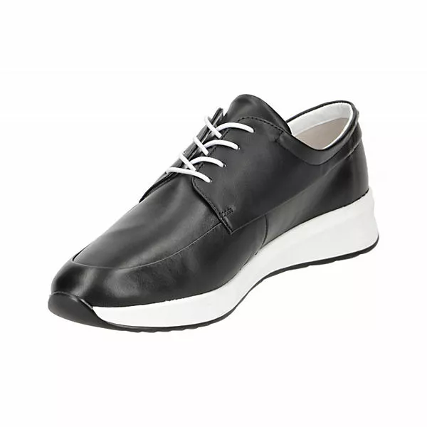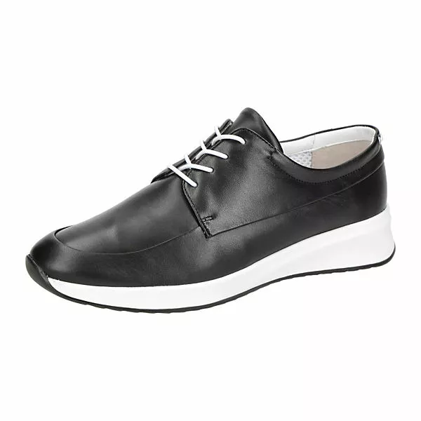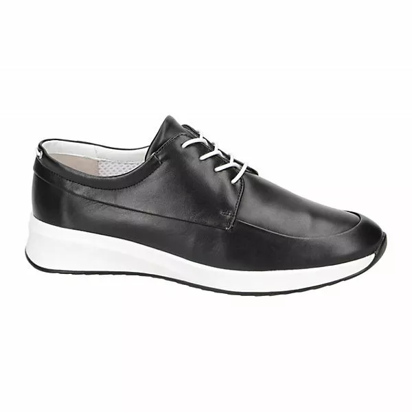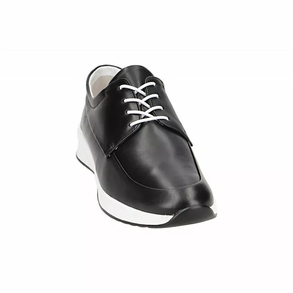Hersteller: Högl Hersteller Art-Nr.: 1-10 3300 0100 Modellname: PLAIN – HÖGL WEEKEND Machart: Damenschuhe – elegante Schnür- Halbschuhe Farbe: schwarz + weiß (black) Obermaterial: Echtleder – Glattleder (Premiumsheep) Innenfutter: Echtleder und Textil Innensohle: Echtleder – Fußbett Wechselfußbett: Ja – herausnehmbare Innensohle Laufsohle: Gummisohle, Keil ca. 1,5cm Verschluss: 4fach Schnürung Absatzart: Keilabsatz / Wedge Absatzhöhe: flach Schuhform: rund Größenhinweis: fällt normal aus Weitenangabe: F – normal Weite