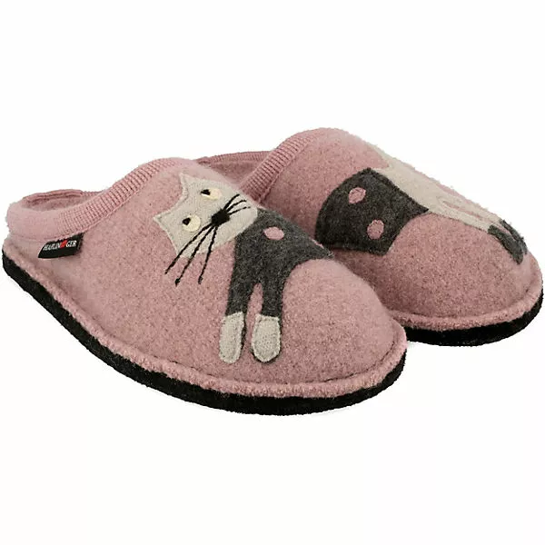 Flair Cucho – so betitelt Haflinger die kuscheligen Damen Hausschuhe in Rosé mit Katzenmotiv. Das Filzmaterial besteht aus reiner Schurwolle und lädt zu entspannenden Momenten im eigenen Heim bei. Eine gepolsterte vorgeformte Decksohle trägt zu noch mehr Komfort bei. Die Textil-Laufsohle macht die Schuhe leicht und lässt Sie nur so dahingleiten.
