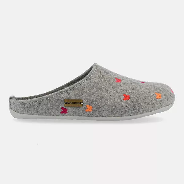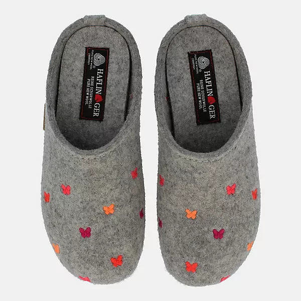 Der Everest Farfalline ist aufgrund der bunt gestickten Schmetterlinge wunderschön anzusehen. Das Obermaterial besteht aus einem einfarbigen reinen Wollfilz, der pefektes Fußklima garantiert. Zudem sorgt das Fußbett in Verbindung mit der stabilen Gummisohle für eine sehr gute Standfestigkeit.