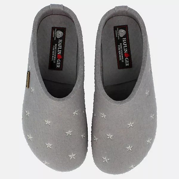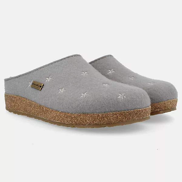 Der Filzclog Grizzly Stelline kommt mit hochwertigem Wollfilz aus reiner Schurwolle auf dessen Oberfläche modische Sterne gestickt sind. Aufgrund der reinen Wolle entsteht kein lästiger Wärmestau und der Fuß kann atmen. Durch den offenen Einschlupf sind die Schuhe schnell an- und ausgezogen. Das anatomisch geformte Kork-Latex-Fußbett verleiht Ihnen einen optimalen Halt und sorgt für einen natürlichen Auftritt. Die gelenkschonende Abrollzone und der fußfreundliche Zehengriff unterstützen den Fuß über den ganzen Tag. Die robuste Laufsohle weist Feuchtigkeit ab und sorgt für einen sicheren Stand.