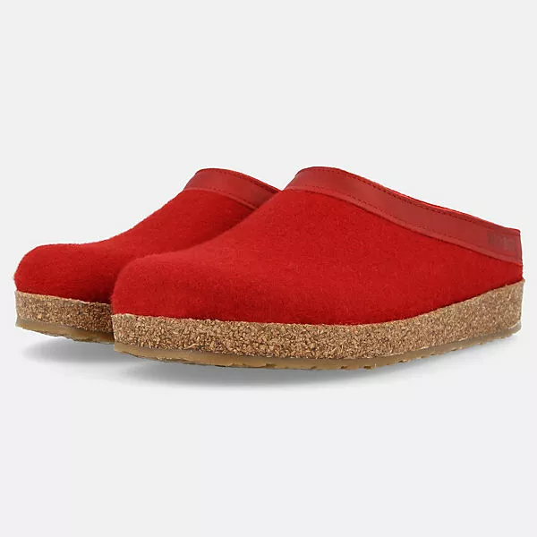 Der Einschlupf ist mit einem dekorativen und stabilisiernden Lederband verziert. Zudem verleiht Ihnen das anatomisch geformte Kork-Latex-Fußbett die optimale Haltung und trägt somit zur Fußgesundheit bei. Dazu kommen eine gelenkschonende Abrollzone sowie der fußfreundliche Zehengriff. Die robuste Laufsohle aus rutschfestem Thermogummi weist Feuchtigkeit und Schmutz ab. Der Haflinger Grizzly zählt zu unseren absoluten Klassikern.