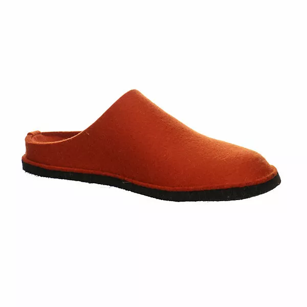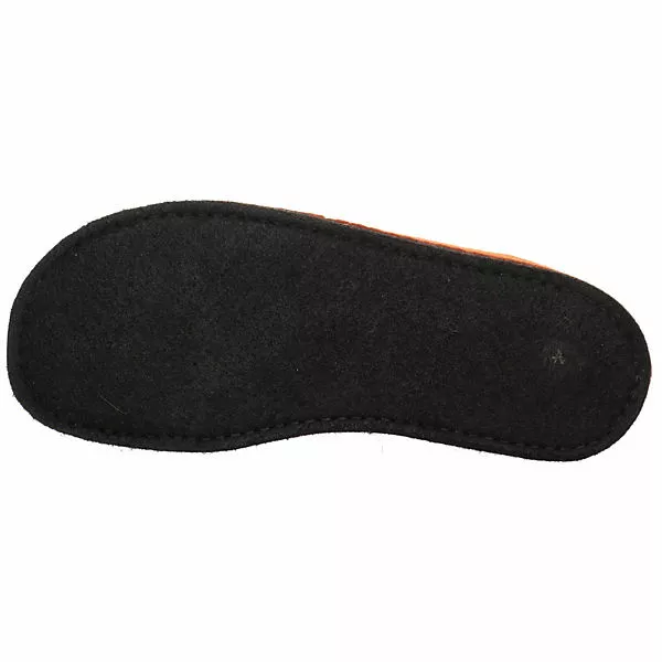 Klassischer Hausschuh aus dem Traditionshaus Haflinger. Gefertigt aus orangefarbenem Filz ist er ein echter Allrounder, der die Füße angenehm warm hält.