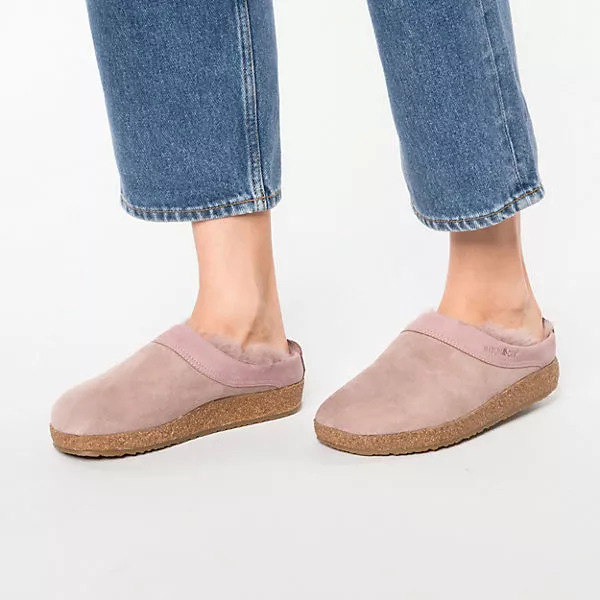 Gemütlich für daheim: diese Lammfell-Hausschuhe der Marke HAFLINGER. Dieses Modell ist mit besonders wärmendem, atmungsaktivem Futter aus Lammfell versehen. In die Schuhe kann ganz schnell hineingeschlüpft werden.