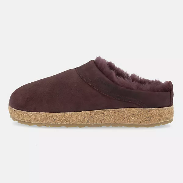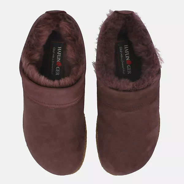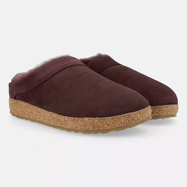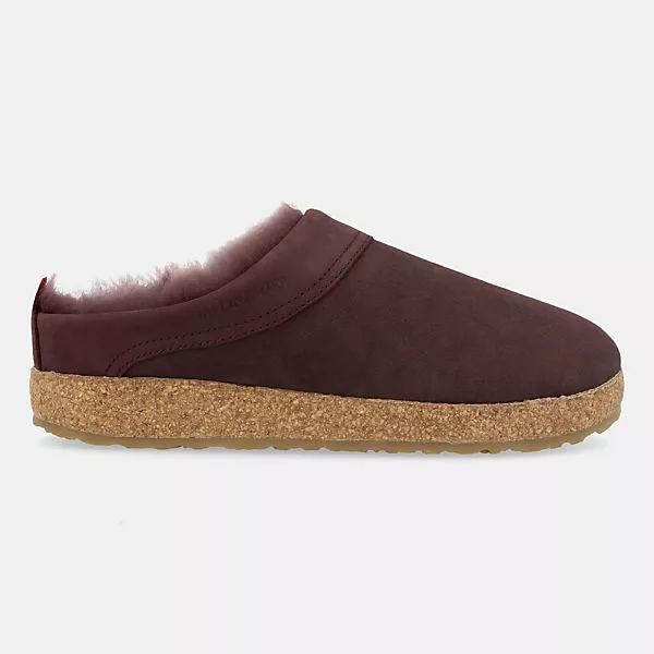 Der Einschlupf ist mit einem dekorativen Lederband verziert, das gleichzeitig die Stabilität der Lammfell Hausschuhe erhöht. Zudem verleiht Ihnen das anatomisch geformte Kork-Latex-Fußbett die optimale Haltung und trägt somit zur Fußgesundheit bei. Dazu kommen eine gelenkschonende Abrollzone sowie der fußfreundliche Zehengriff. Die robuste Laufsohle aus rutschfestem Thermogummi weist Feuchtigkeit und Schmutz ab.