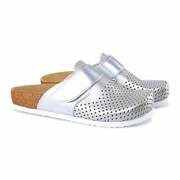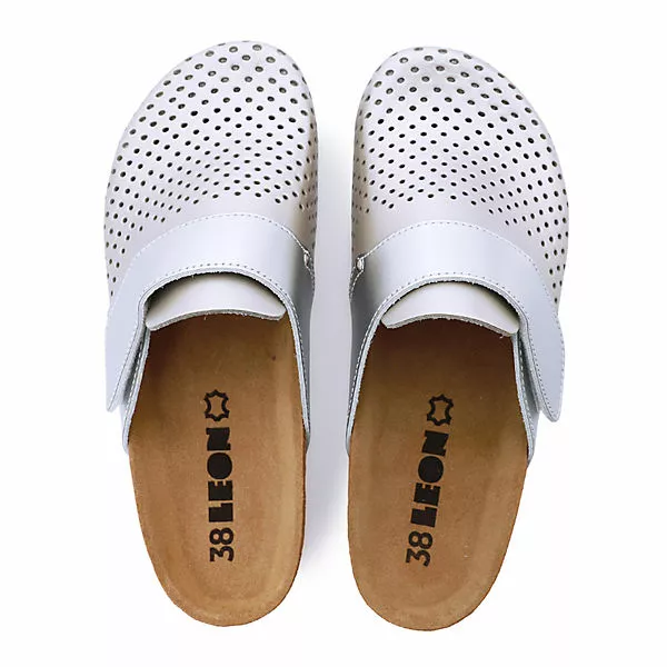 Der Begleiter für Beruf und Alltag. Dank der geschlossenen Form sind deine Zehen geschützt. Obermaterial aus echtem Lederkombiniert mit einem individuell verstellbaren Klettverschluss, lässt sich ideal an den Fuß anpassen. Ein mit Leder bezogenes, super weich gepolstertes Fußbett, sorgt für ein optimales Tragegefühl, auch an einem langen Arbeitstag. Laufsohle aus extra leichtem EVA.
