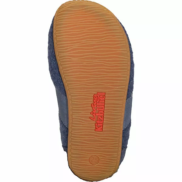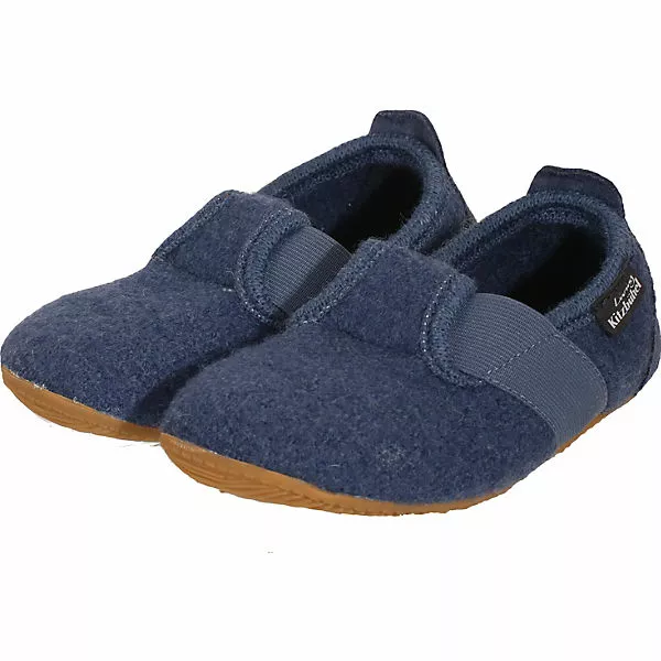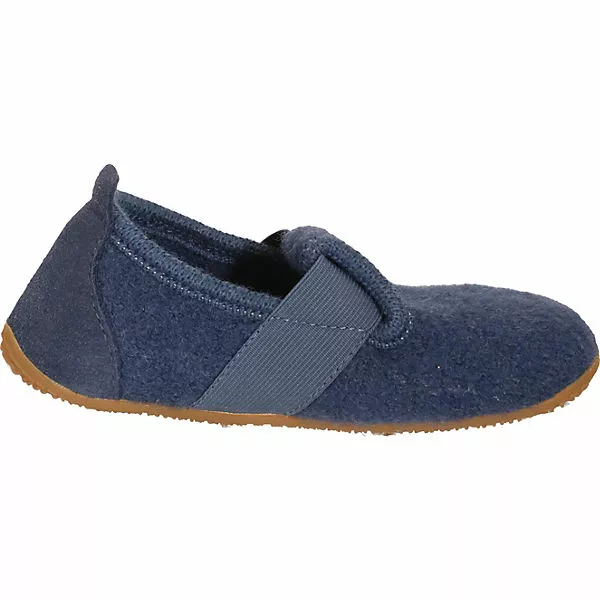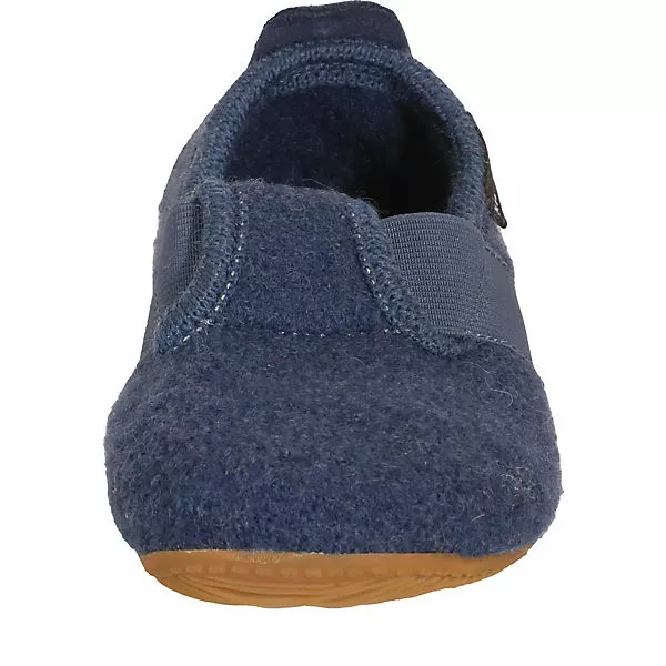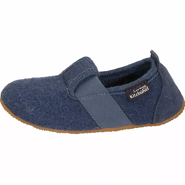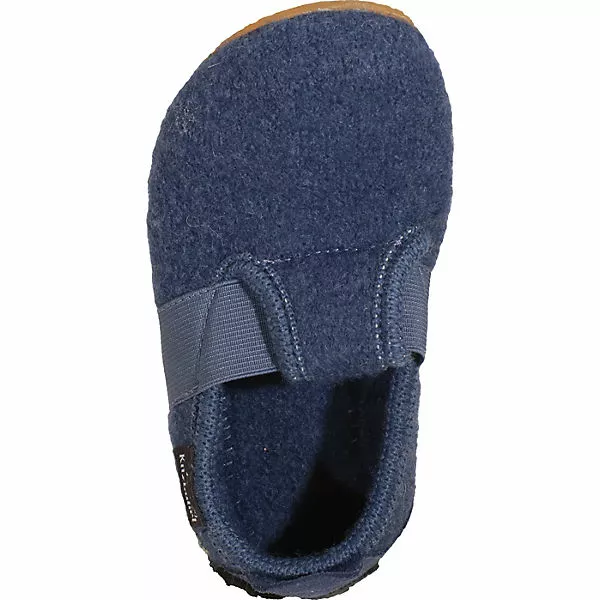 edel, dunkelblau. Ein warmer Walkhausschuh von Living Kitzbühel, der mit seiner wasserdichten und rutschfesten Gummisohle und dem Ristgummizug einfach praktisch ist.