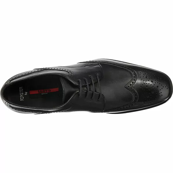 Die LLOYD Forster Business-Schnürschuhe bestehen aus echtem Kalbsleder und zeigen sich mit Budapester Muster und zusätzlichen Verzierungen auf dem Zehenbereich. Die Echtleder-Decksohle ist im hinteren Bereich gepolstert.