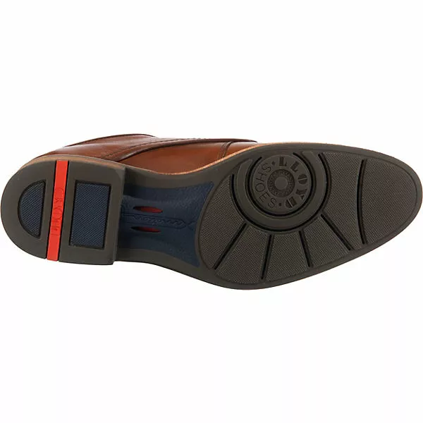 Flotter Herrenschnürschuh der Marke Lloyd aus einem feinen hochwertigem Glattleder.Dieses Leder verleiht einen edlen Look und ist gut zu pflegen. Das exzellente Innenleben aus bestem Leder gibt Ihnen ein erholsames Gefühl an langen Tagen. Durch die auswechselbare Decksohle ist es möglich, eigene Einlagen zu verwenden. Geschnitten ist die Form für normal breite Füße (Weite F). Der stabile Blockabsatz hat eine Höhe von cirka 1 cm ,die aus einem weichen PU-Material bestehende Laufsohle schont die Gelenke und federt jeden Tritt optimal ab. Durch die runde Schuhspitze wirkt der Schuh dezent am Fuß und bietet genügend Platz für die Fußzehen. Die Schuhgröße fällt regulär aus.