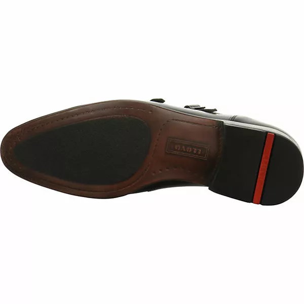 Durch eine hochwertige Art überzeugen die LLOYD Businessschuhe Doppelmonk »MAILAND« aus schwarzem Glattleder. Ein edles und klassisches Auftreten ist mit dem Businessschuh gegeben. Durch die schlanke Spitze in klassischer Optik, wirkt der Fuß optisch schmaler. Mit der abriebbeständigen Gummisohle wird der Auftritt beim Gehen ideal abgefedert, während die innenliegende Sohle aus Leder und Textil dabei ein hohes Wohlfühlpotenzial bietet. Für ein angenehmes Tragegefühl und eine elegante Optik sorgen der Schnallenverschluss und das weiche Glattleder. Die leder- und textilgefütterten Businessschuhe sind komfortabel und atmungsaktiv. Durch das Variofootbed ist das Modell aufgrund des herausnehmbaren Fußbettes optimal für Einlagen geeignet.