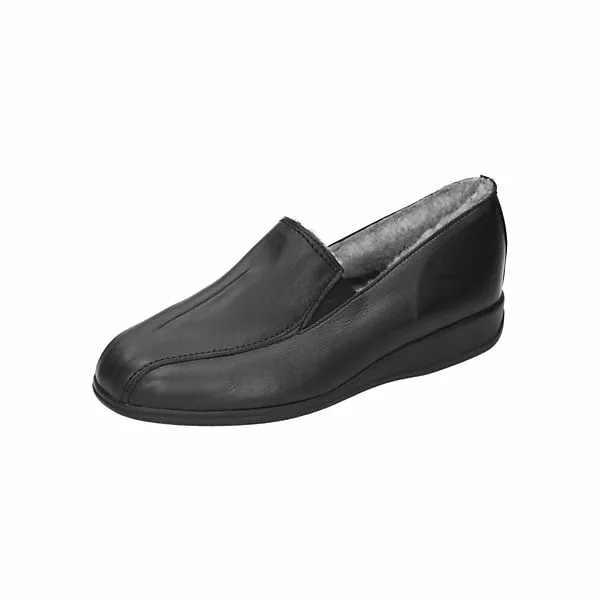 Bei diesem Produkt handelt es sich um einen Schuh aus der Kategorie Klassische Hausschuhe für Herren. Als Obermaterial wurde Glattleder verwendet und im inneren Bereich des Schuhs wurde Lammfell-Futter und Lammfelldecksohle verarbeitet. Die Schuhweite dieses Artikels ist normal und somit standard. Als Verschlussart wurde Schlupfschuh gewählt und die PU-Sohle rundet das Produkt ab.