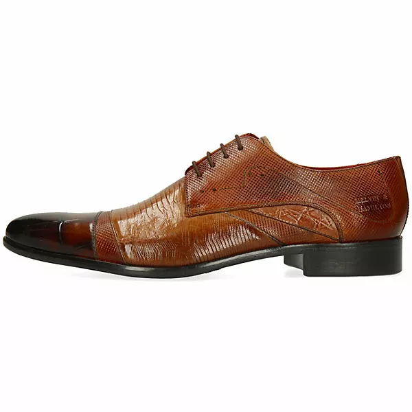 Die Herren-Derbies Toni 39 von Melvin & Hamilton sind stilvolle und moderne Schnürschuhe aus nachhaltig hergestelltem Leder, die man zur Arbeit oder unterwegs tragen kann. Sie sind aus Vegetabil gegerbtes Kalbsleder gefertigt und haben eine Leder & Gummi-Sohle. Ideal für die Herbst / Winter-Saison, garantiert das hochwertige Leder optimalen Tragekomfort – jahrelang! Pflegen Sie Ihre Derbies, indem Sie Schuhspanner aus Zedernholz verwenden, und regelmässig Schuhcreme auftragen. Die Schuhspanner und die richtige Schuhpflege helfen, Faltenbildung und Abnutzung des Leders zu verhindern.
