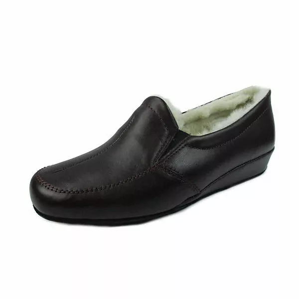 Bequeme Damen Hausschuhe von Rohde aus einem feinen hochwertigem Glattleder. Innen ist der Schuh mit einem hochwertigen echten Lammfell ausgestattet. Der Schuh hat eine normale Weite. Der Absatz ist durchgehend flach. Die weiche PU-Sohle schont die Gelenke und federt jeden Ihrer Tritte optimal ab. Die Schuhgröße fällt regulär aus.