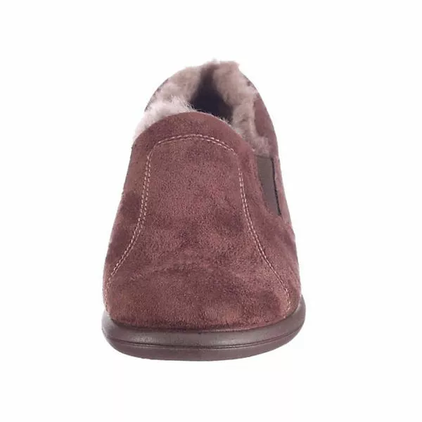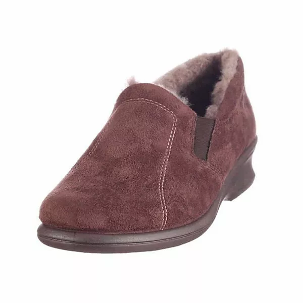 Bequeme Damen Hausschuhe von Rohde aus einem hochwertigem Synthetikmaterial. Innen ist der Schuh mit einem hochwertigem Kunstfell ausgestattet. Der Schuh hat eine normale Weite. Der Keilabsatz hat eine Höhe von cirka 2 cm. Die weiche PU-Sohle schont die Gelenke und federt jeden Ihrer Tritte optimal ab. Die Schuhgröße fällt regulär aus.