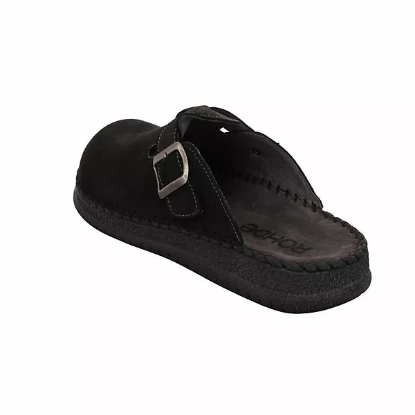 Zeitloser Herrenhausschuh von Rhode aus weichem Nubukleder. Das anatomisch geformte Fußbett und die flexible Laufsohle bieten einen hohen Tragekomfort. Der verstellbare Riegel mit Schnalle sorgt für eine gute Passform. Mit diesem Schuh ist man auch zuhause immer gut angezogen.