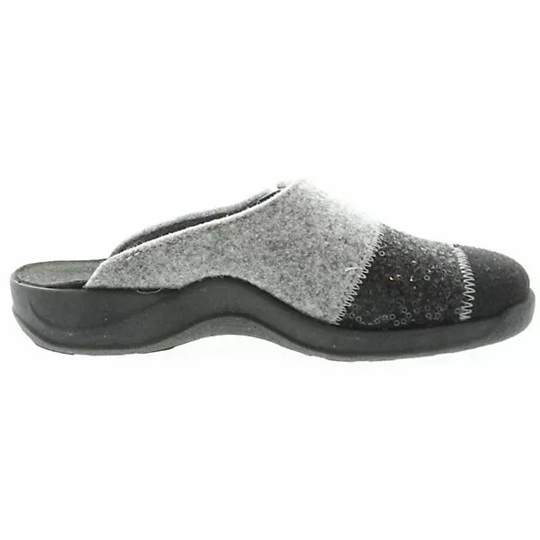 Bequeme Damen Hausschuhe von Rohde aus einem angenehm weichen Filzmaterial. Innen ist der Schuh mit hochwertigem Filz augestattet. Der Schuh hat eine normale Weite. Die Laufsohle ist aus Gummi. Die Schuhgröße fällt regulär aus.
