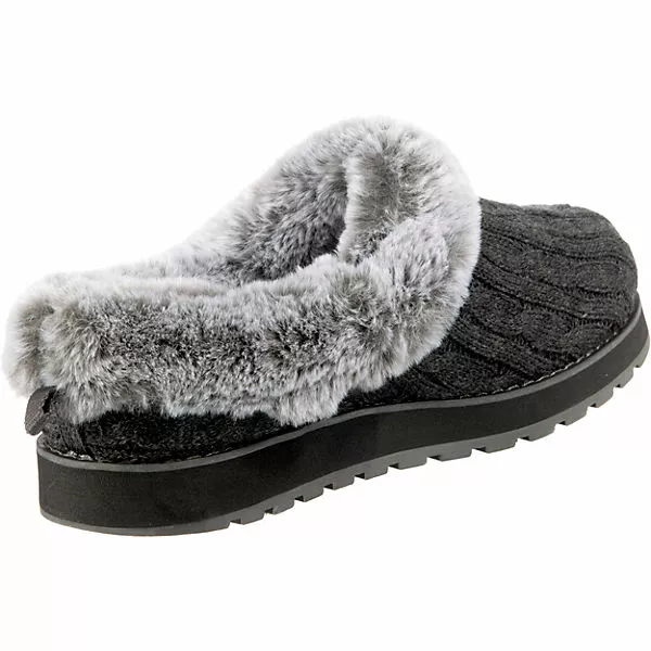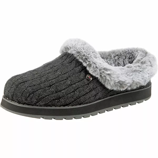 Die Pantoffeln von SKECHERS sind genau das Richtige für daheim. In die Schuhe kann bequem hineingeschlüpft werden. Der Look dieses Paares wird durch das textile Obermaterial ergänzt.