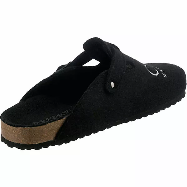 Die Pantoffeln von SUPERSOFT sind ideal für daheim. Dieses Modell ist mit einem angenehm warmen Futter versehen. In die Schuhe kann ganz schnell hineingeschlüpft werden. Die Aufmachung des Paares wird durch das textile Obermaterial ergänzt.