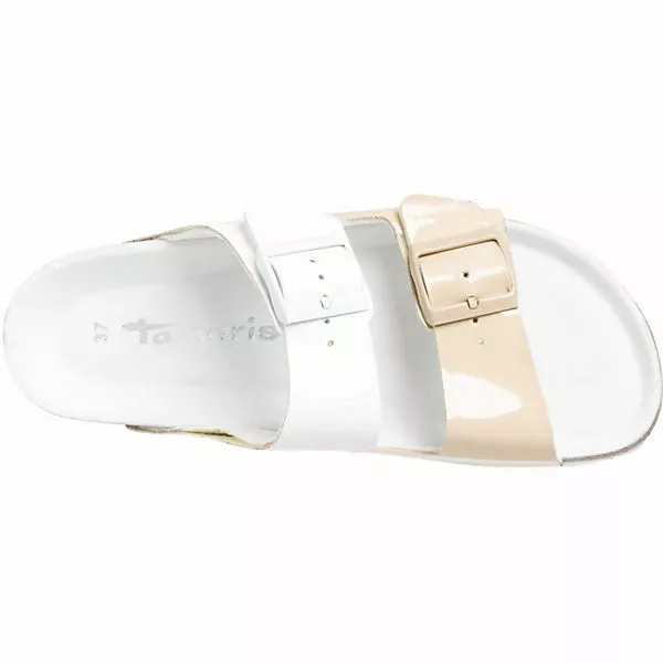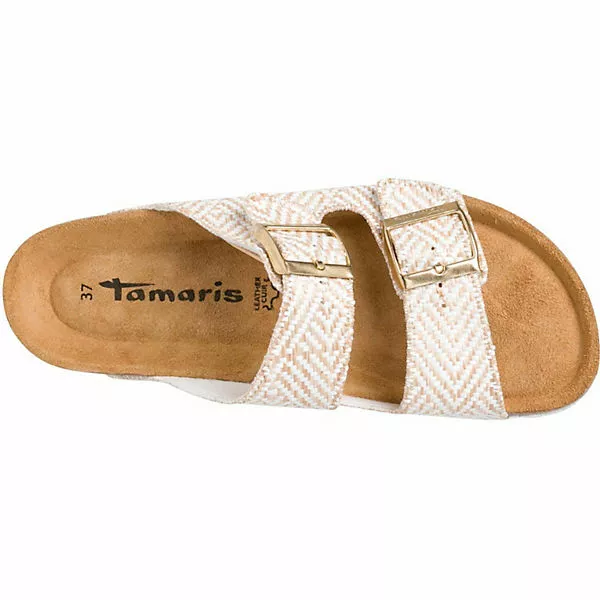 Der Tamaris Hausschuh ist aus Synthetik. Die Schließe sorgt für eine zusätzlich individuelle Größeregulierung.