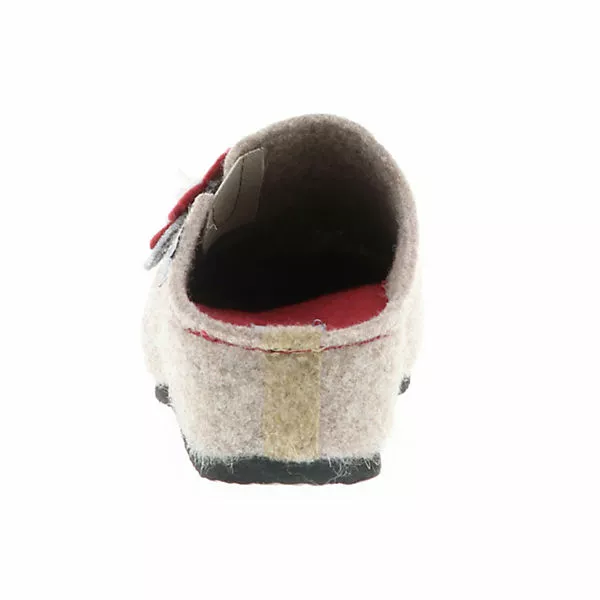 Das Obermaterial wurde aus ökologischem Wollfilz gefertigt und ist somit umweltfreundlich und angenehm weich zu tragen. Da das Innenmaterial und die Decksohle ebenfalls aus Filz bestehen werden die Füße angenehm warm gehalten. Optisches Highlight ist die angebrachte kleine Blume an der Außenseite.