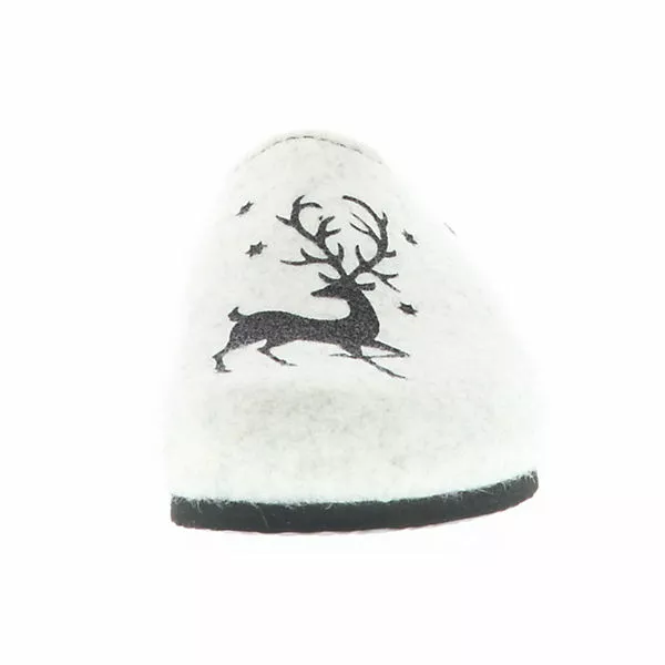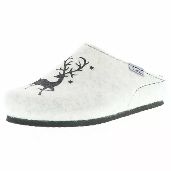 Das Obermaterial wurde aus ökologischem Wollfilz gefertigt und ist somit umweltfreundlich und angenehm weich zu tragen. Da das Innenmaterial und die Decksohle ebenfalls aus Filz bestehen werden die Füße angenehm warm gehalten. Optisches Highlight ist der glitzernde Hirsch auf dem Blatt. Einfach reinschlüpfen und wohlfühlen.