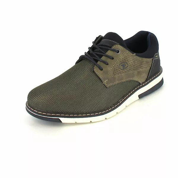 – moderner Herren Schnürschuh von der Marke Tom Tailor – beste Anpassung an den Fuß durch die Schnürung – weich gepolsterter Schaftrand und Zunge – herausnehmbare Innensohle – farblich abgestimmte Details – rutschhemmende Laufsohle für besten Halt