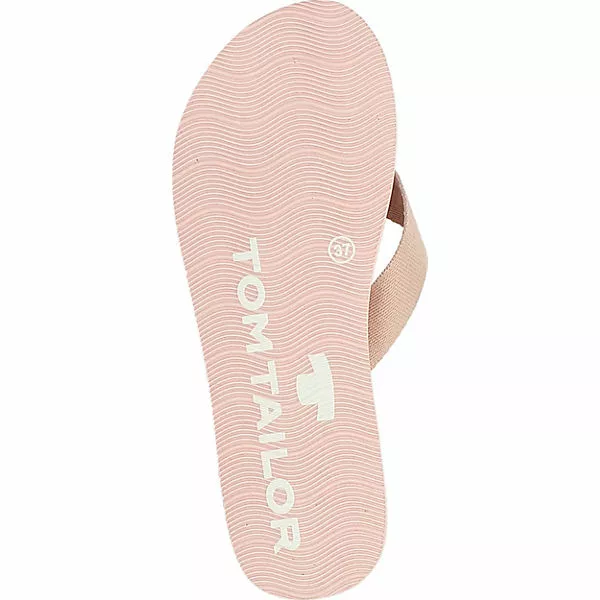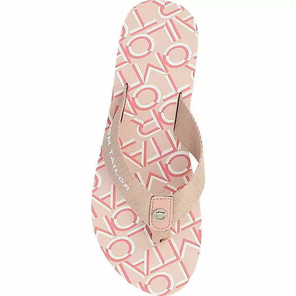 Diese praktischen Zehentrenner der Marke TOM TAILOR eignen sich praktisch zu vielen verschiedenen Gelegenheiten. Es handelt sich um ein Modell zum schnellen und einfachen Hineinschlüpfen. Die Schuhe punkten mit einem Futter aus Polyester.