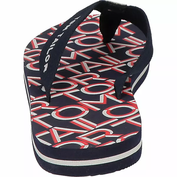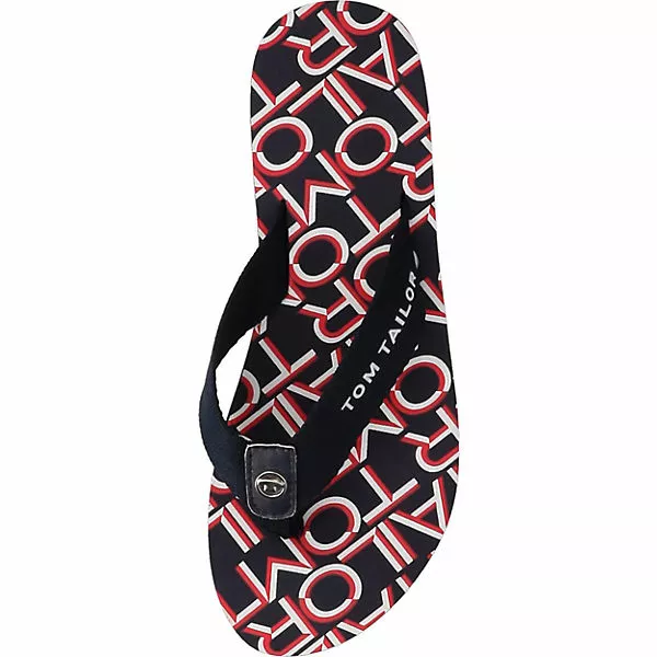 Diese praktischen Zehentrenner der Marke TOM TAILOR eignen sich praktisch zu vielen verschiedenen Gelegenheiten. Es handelt sich um ein Modell zum schnellen und einfachen Hineinschlüpfen. Die Schuhe punkten mit einem Futter aus Polyester.