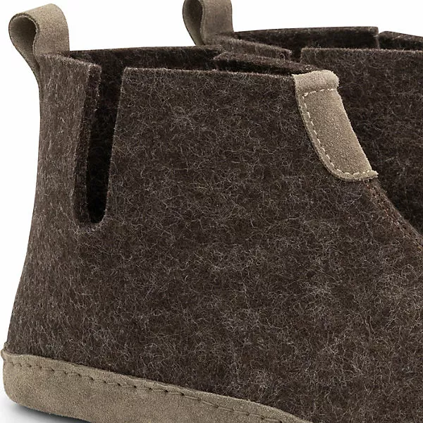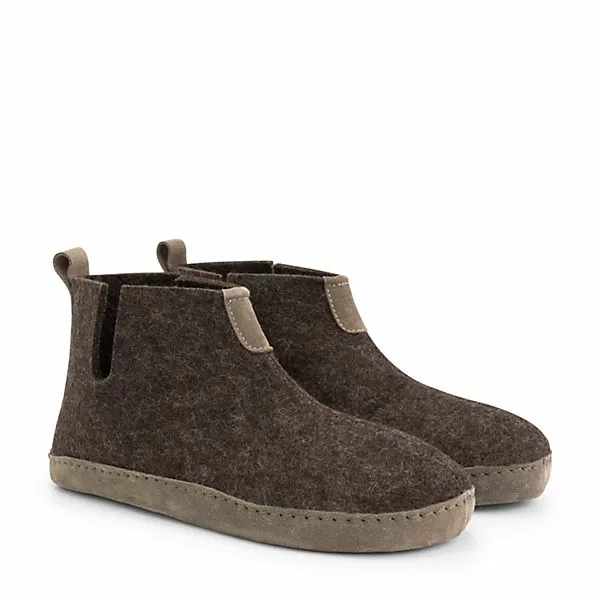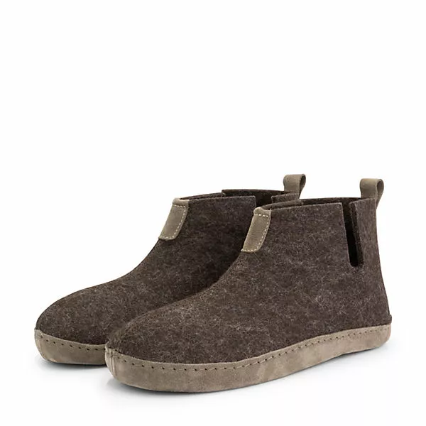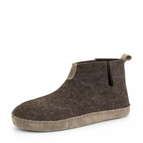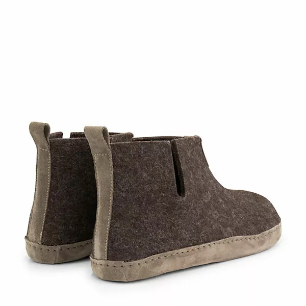 Die Stay-Home Pantoffeln von Travelin‘ sind aus hochwertigen Naturmaterialien gefertigt. Diese knöchelhohen Hausschuhe sorgen dafür, dass auch Ihre Knöchel warm bleiben. Die Öffnung an der Seite sorgt für ein einfaches Hineinschlüpfen. Der Hausschuh hat eine Laufsohle aus Wildleder und ist daher nur für den Innenbereich geeignet.