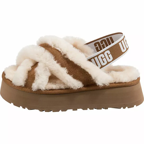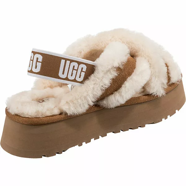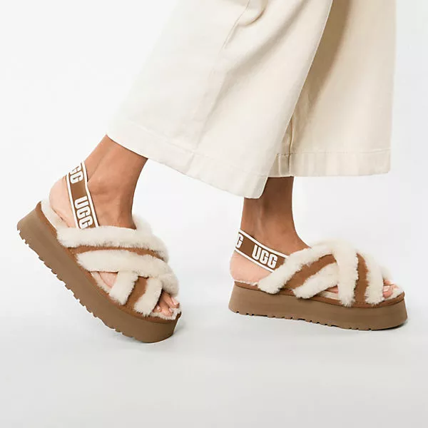 Auf Schritt und Tritt: Die Pantoletten von UGG dürfen zu keiner Gelegenheit fehlen. Das Fußbett besteht aus atmungsaktivem Echtleder, das ein angenehmes Tragegefühl begünstigt.
