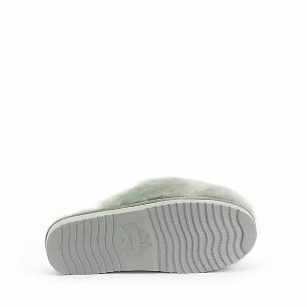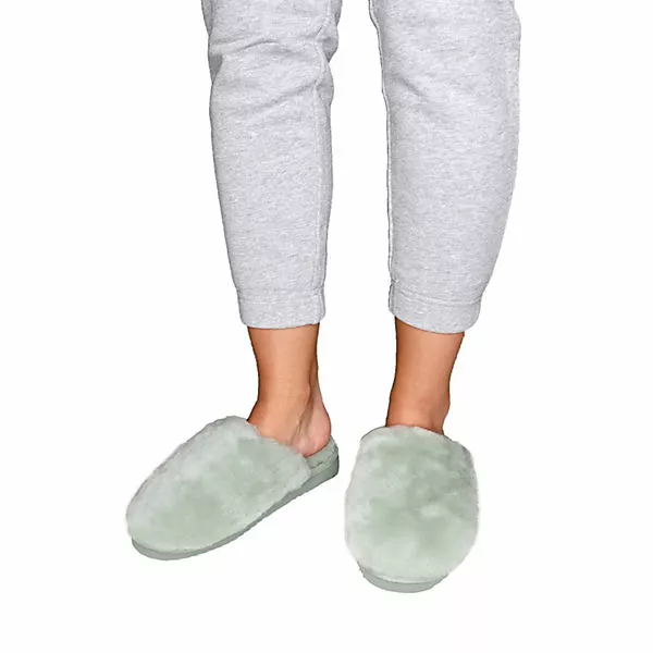 Der Pantoffel für Damen besteht aus 100 % Schaffell von australischen Merinoschafen. Die robuste und flexible Gummisohle bietet Halt und Komfort auch auf harten Böden, wie Fliesen.