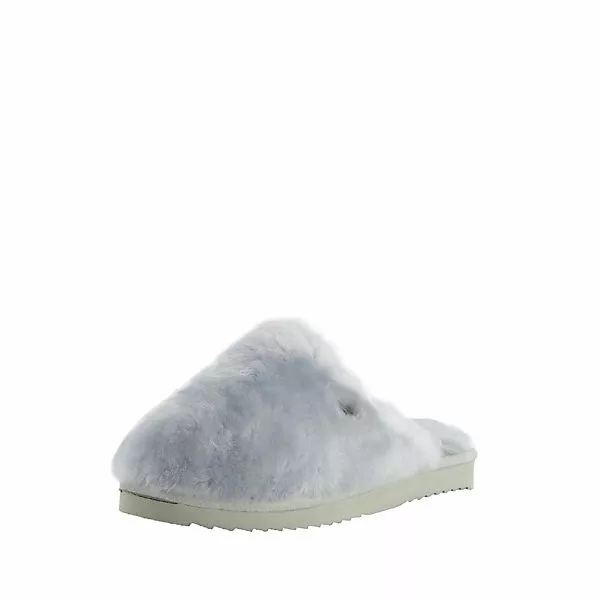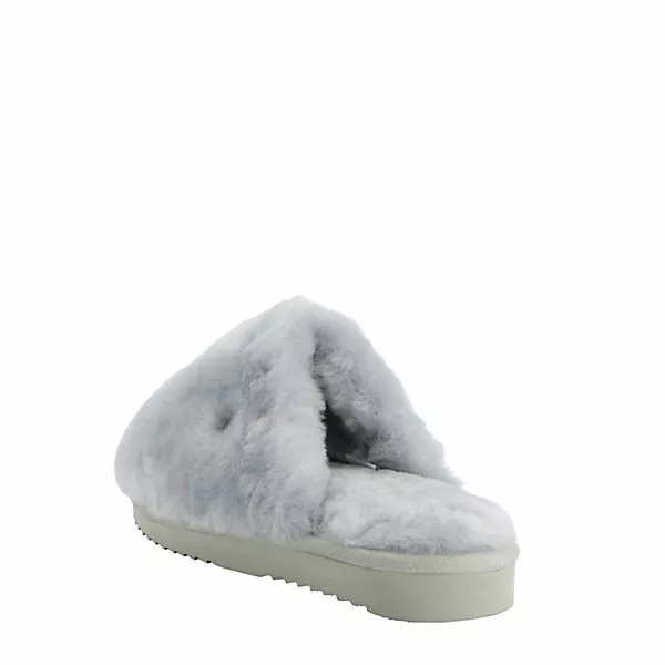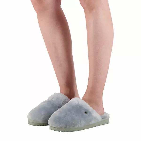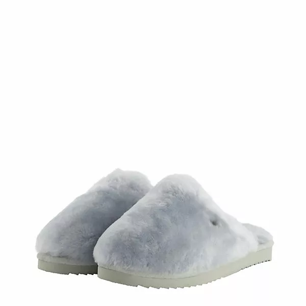 Der Pantoffel für Damen besteht aus 100 % Schaffell von australischen Merinoschafen. Die robuste und flexible Gummisohle bietet Halt und Komfort auch auf harten Böden, wie Fliesen.