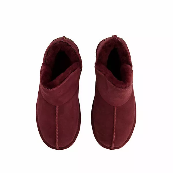 Der Hausschuh hat ein weiches, plüschiges und warmes Futter aus 100 % Schaffell, welches von australischen Merinoschafen stammt. Die Sohle ist robust und rutschfest, weswegen der Pantoffel auch für harte Böden, wie z.B. Fließen geeignet ist.