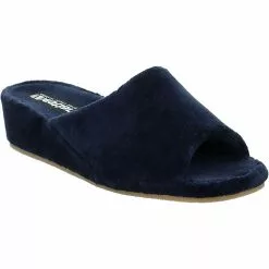 Westland Damen Pantoletten/ Hausschuhe MARSEILLE Blau Textil – Open Toe – weiches, flauschiges Textilmaterial
