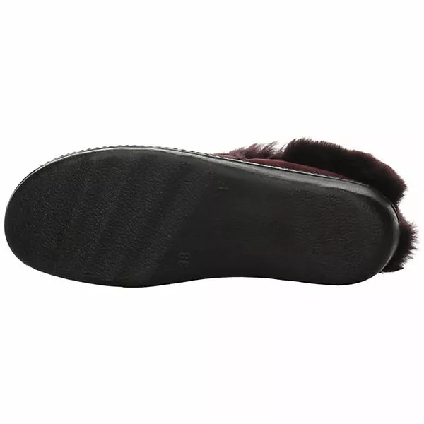 Damen-Hausschuh mit echter Lammfellfütterung und einer leichten und flexiblen PU-Laufsohle. Guten Halt im Schuh erhält man durch die feste Hinterkappe. An kalten Wintertagen ist dieser Hausschuh die perfekte Wahl für wohlige Tage.